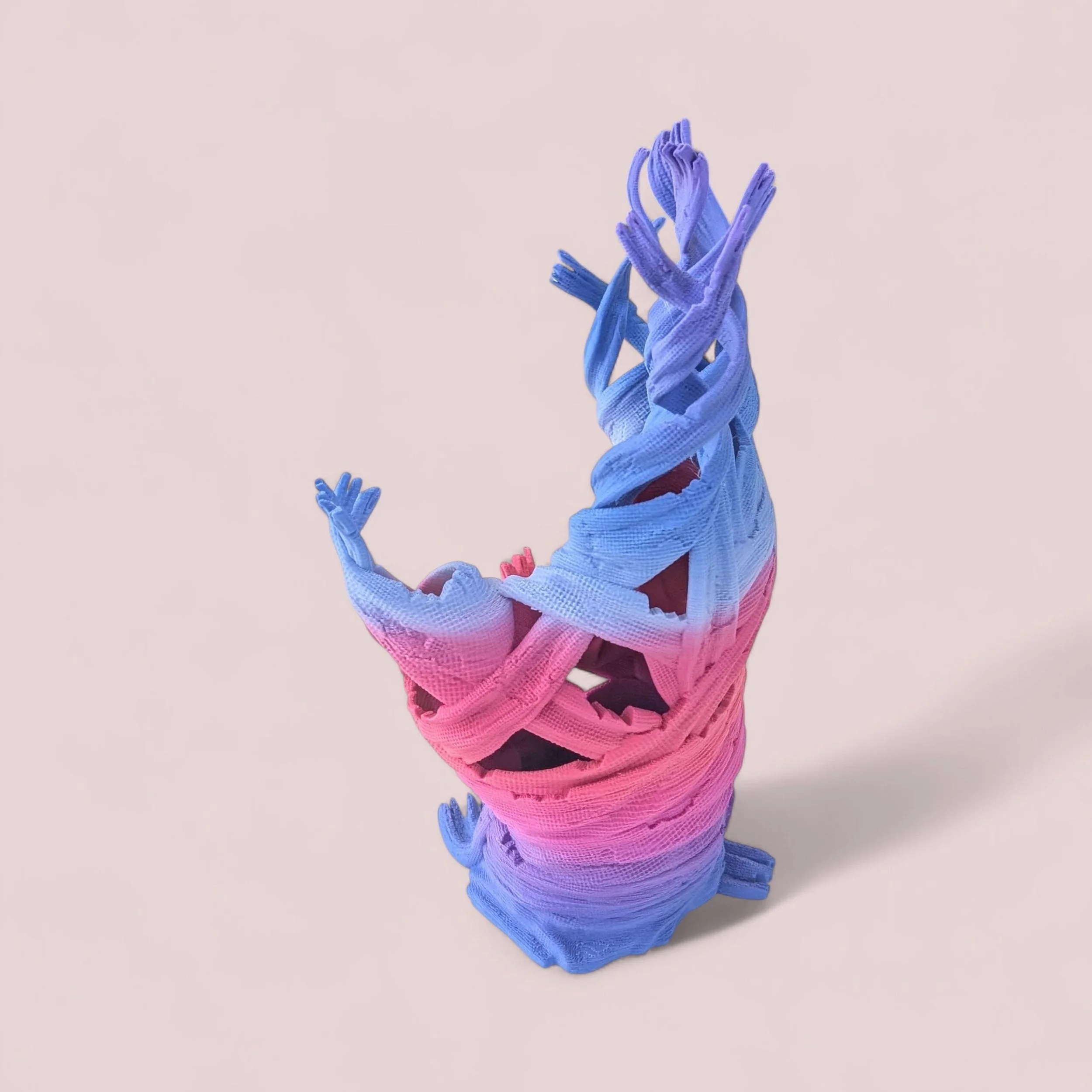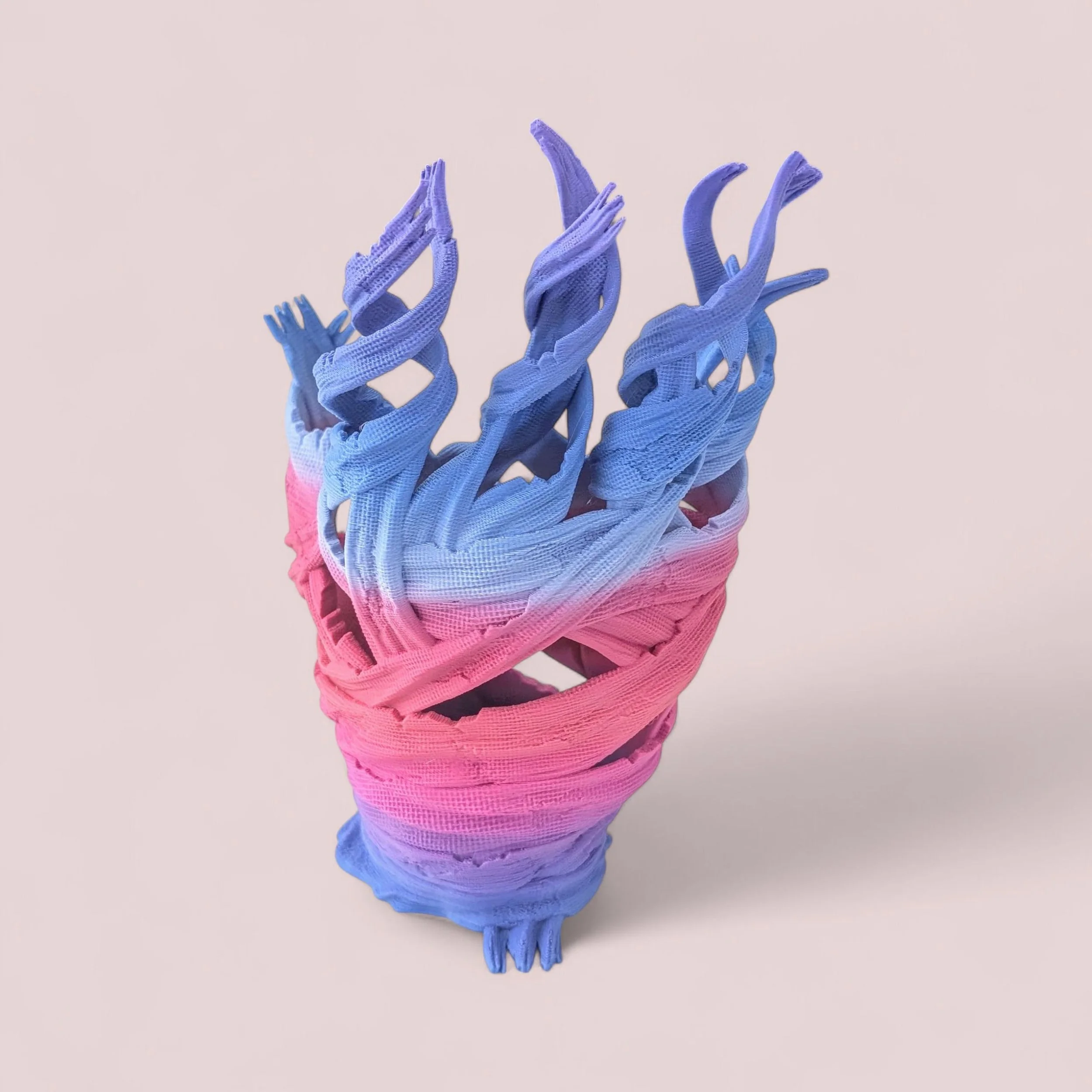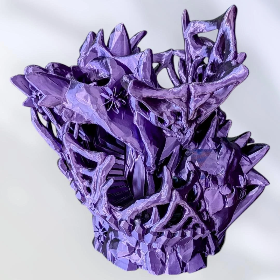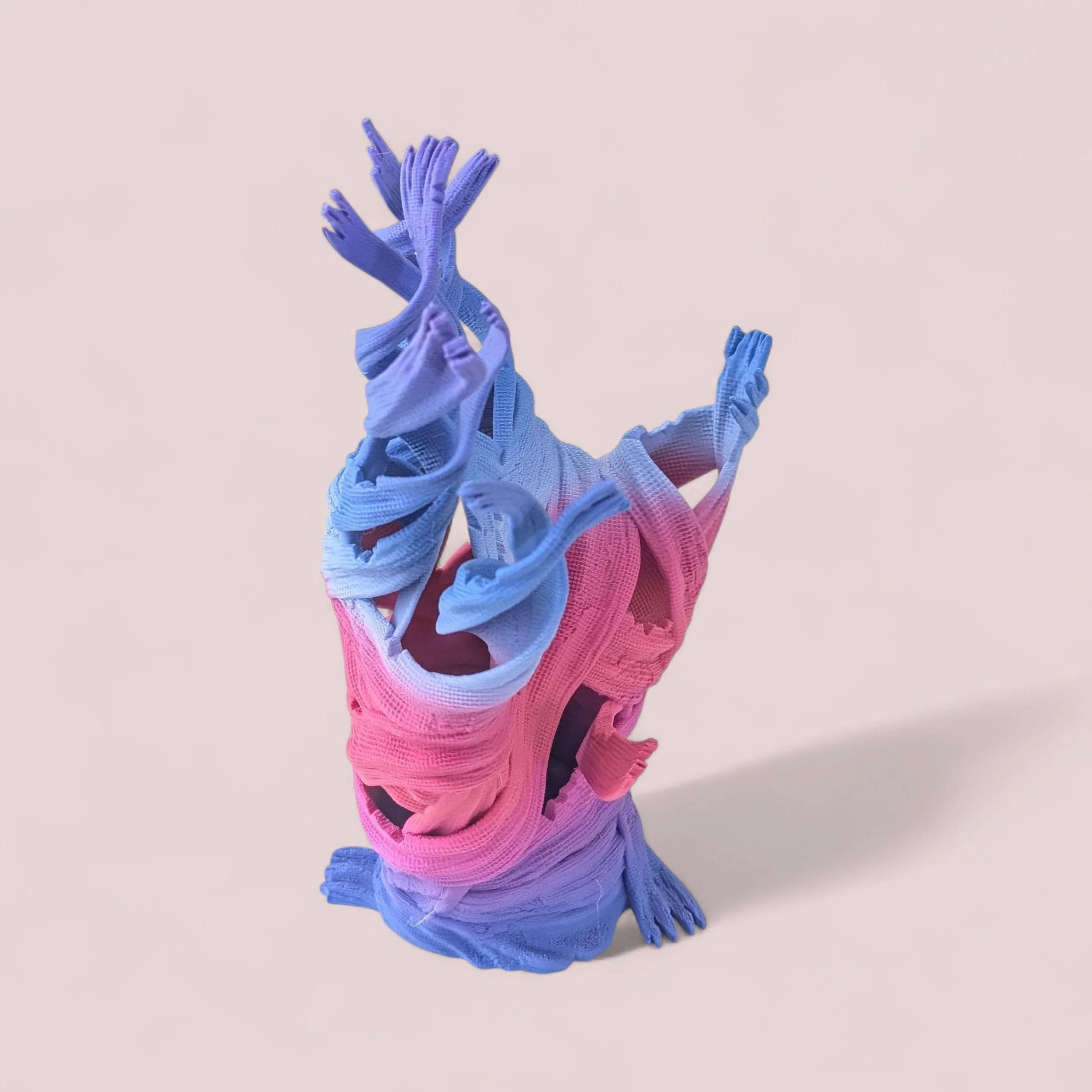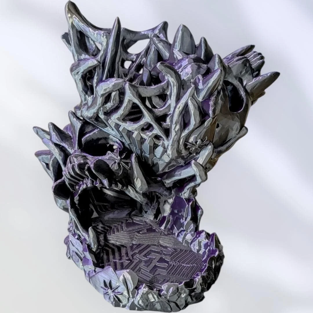 A collection of figures including a colorful Geode-inspired Xbox controller stand, a haunted house backdrop with small Cthulhu and zombie figures in a haunted house scene, and a set of spooky ghosts with a graveyard playset .